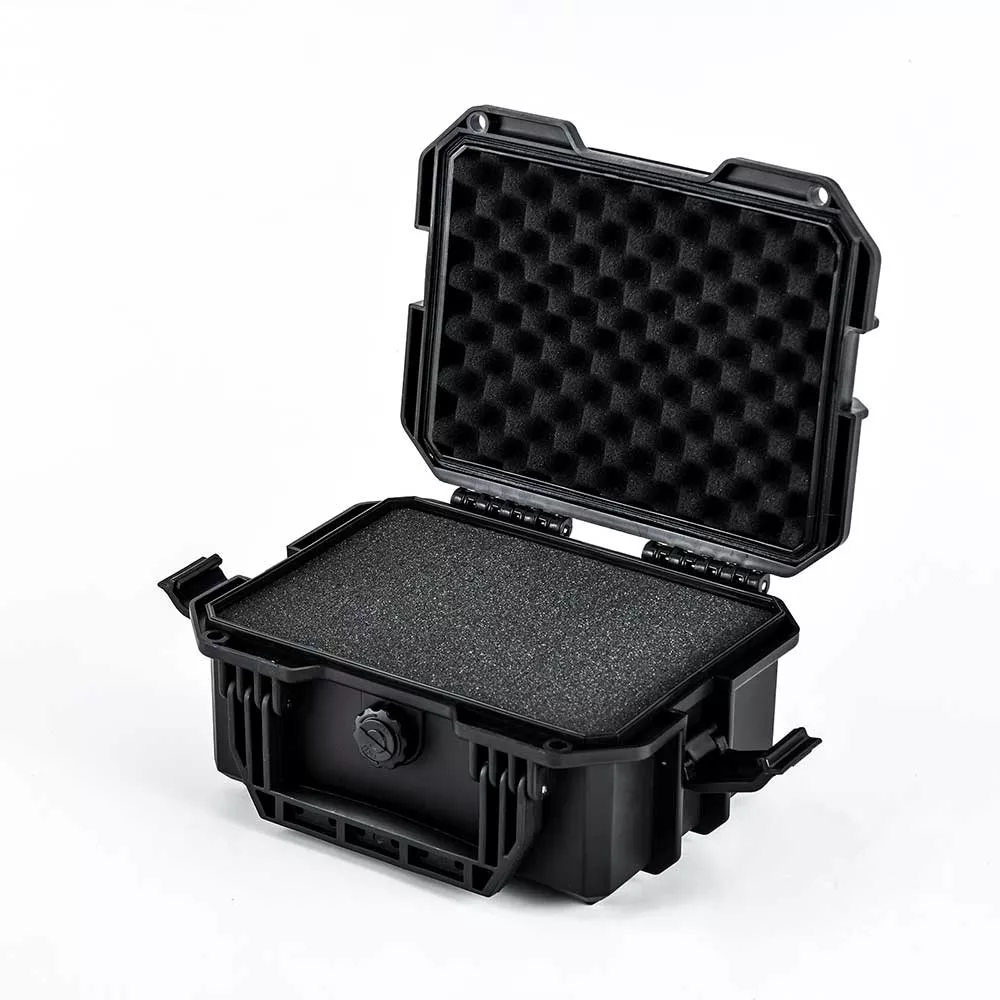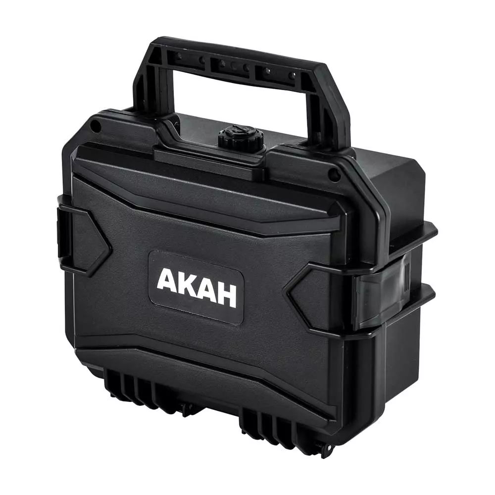 Der AKAH Kurzwaffenkoffer bietet zuverlässigen Schutz für Pistolen und Zubehör in einem bruchsicheren Hartplastikgehäuse. Das Gehäuse ist wasser- und staubdicht ausgeführt; ein Entlüftungsventil sorgt für Druckausgleich bei Temperatur- und Höhenänderungen. Zwei Verriegelungsklappen mit Scharnierstiften gewährleisten eine robuste, wiederholgenaue Schließmechanik, während zwei Ösen die Nutzung von Vorhängeschlössern ermöglichen.